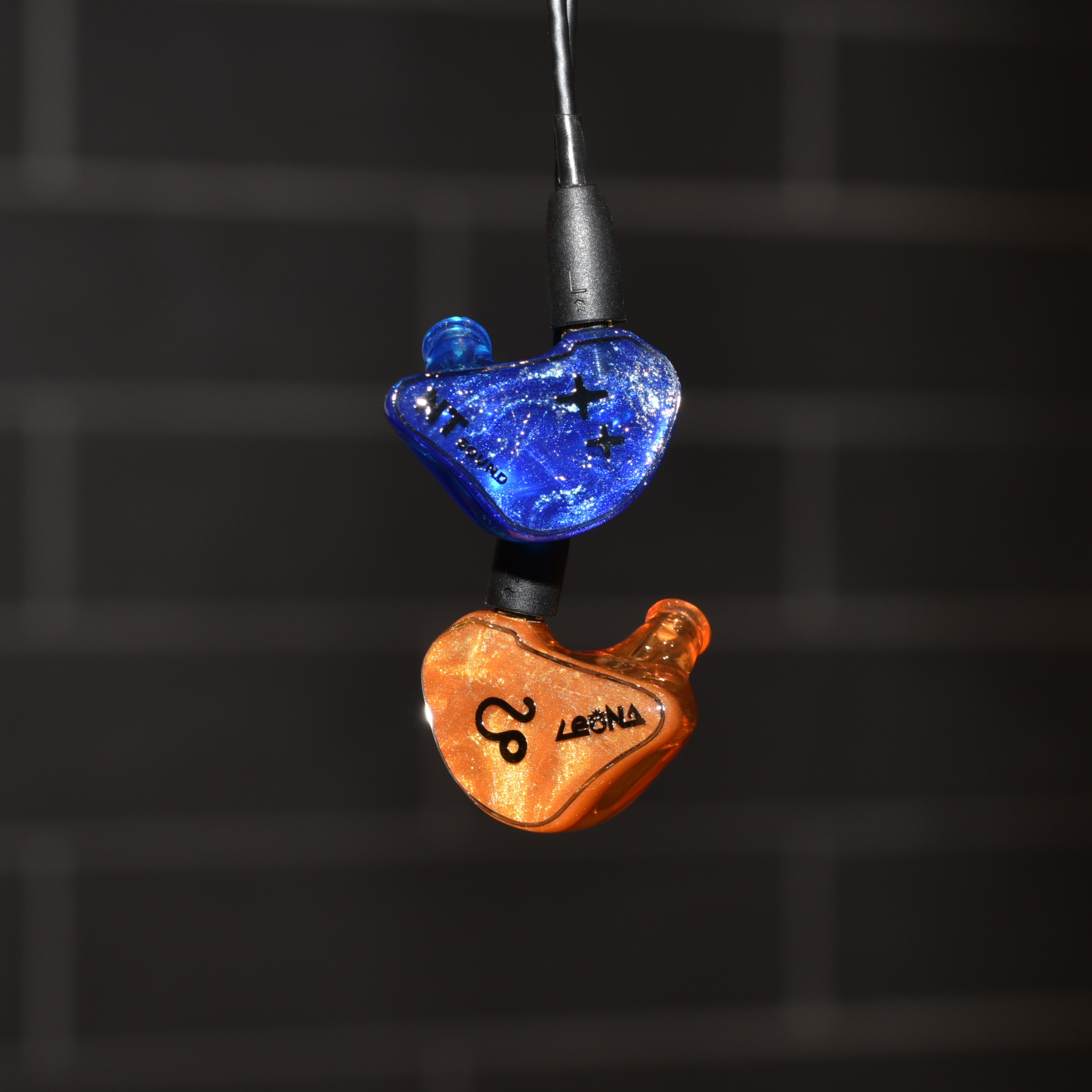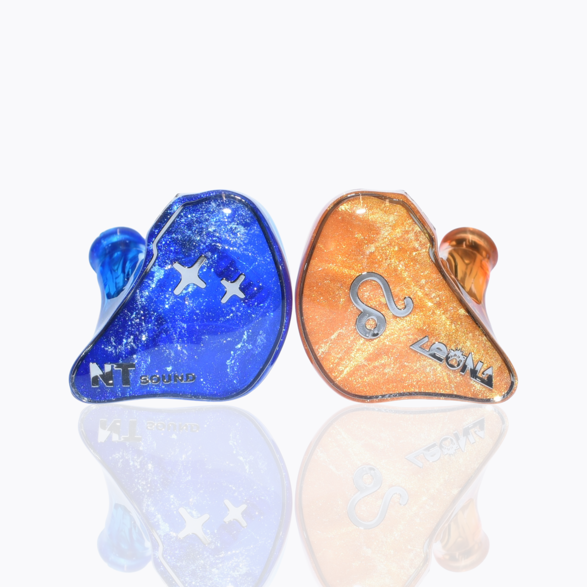 左側は青、右側はオレンジの左右非対称カラーを採用。モチーフロゴ、ネームロゴ、オリジナルロゴ、ブランドロゴ、フレームロゴなど、さまざまなシルバーロゴをあしらった豪華仕様のコラボイヤホンです。