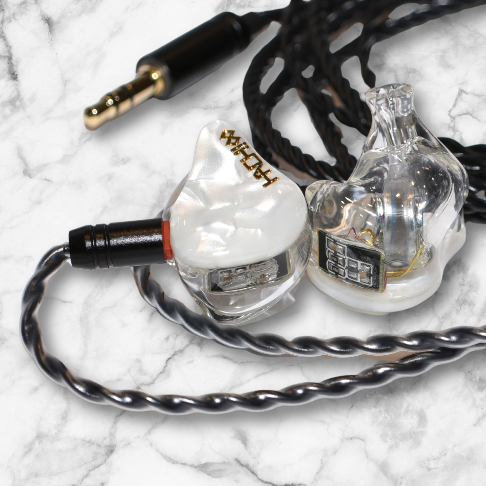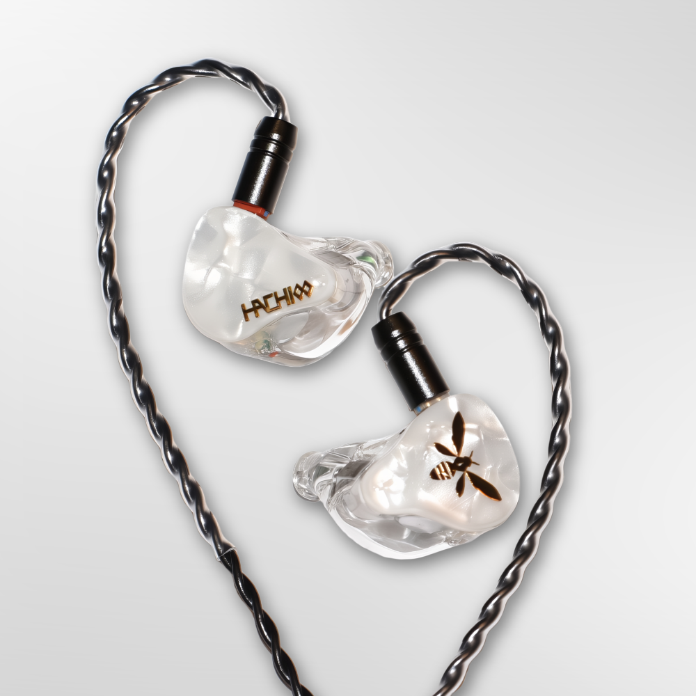 TMX001-HACHIは、1基の中高域用バランスドアーマチュアドライバーと、2基の10mm径ダイナミックドライバーから成る、3ドライバー構成のハイブリッドモデルです。