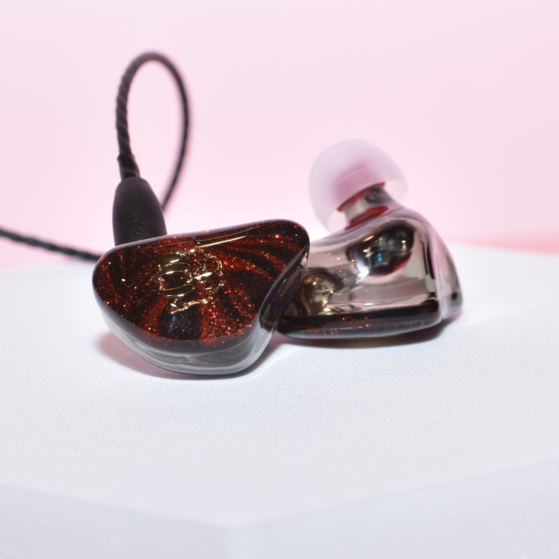 ハンドメイドで作りだされるスワール模様は、それぞれ一点もので配色が異なり、光の当たる角度によっても表情が変化します。長年イヤモニの製造・設計に携わってきたエンジニアが作り出す、世界にひとつだけの特別なイヤホンです。