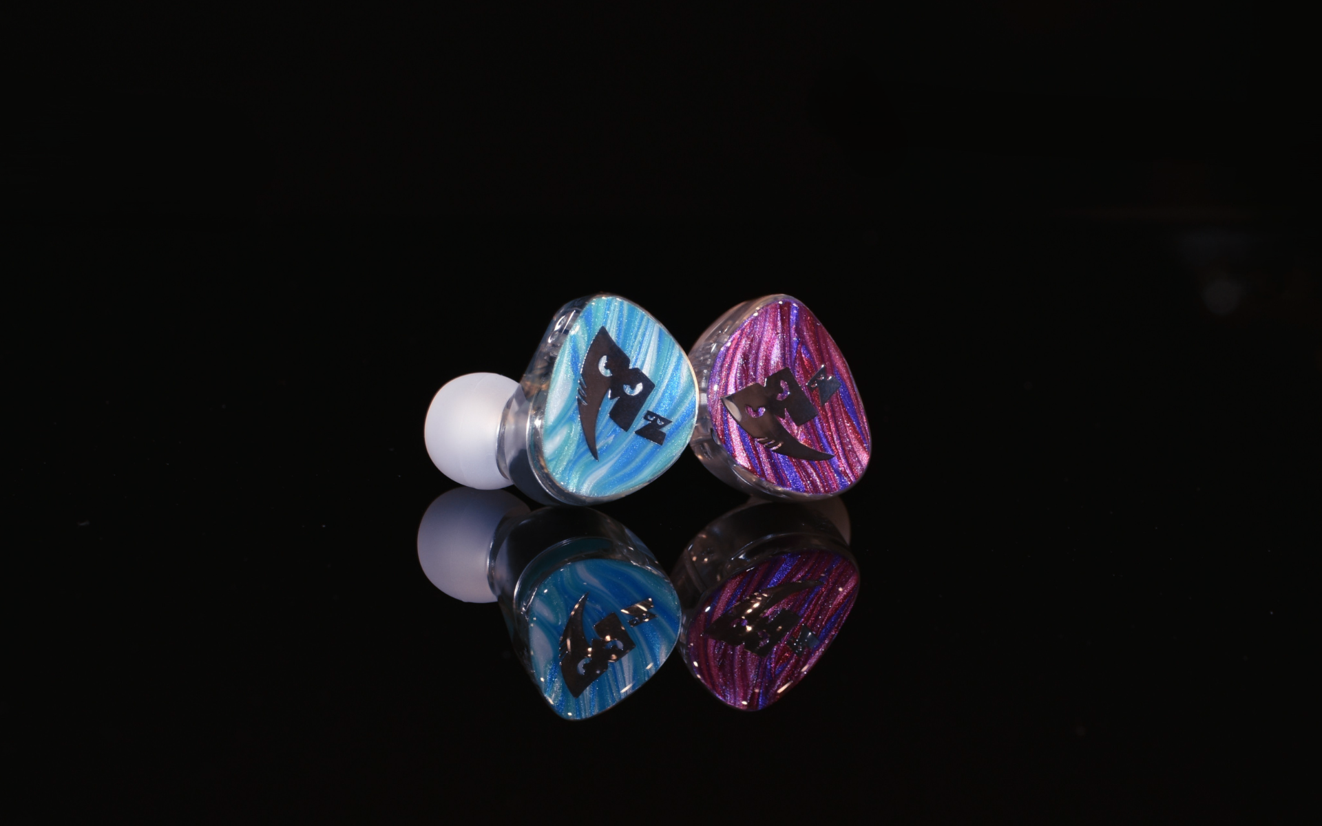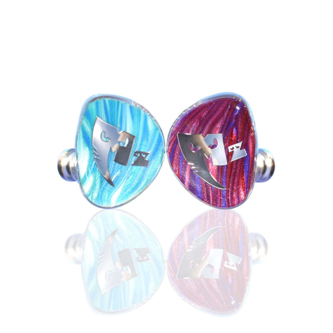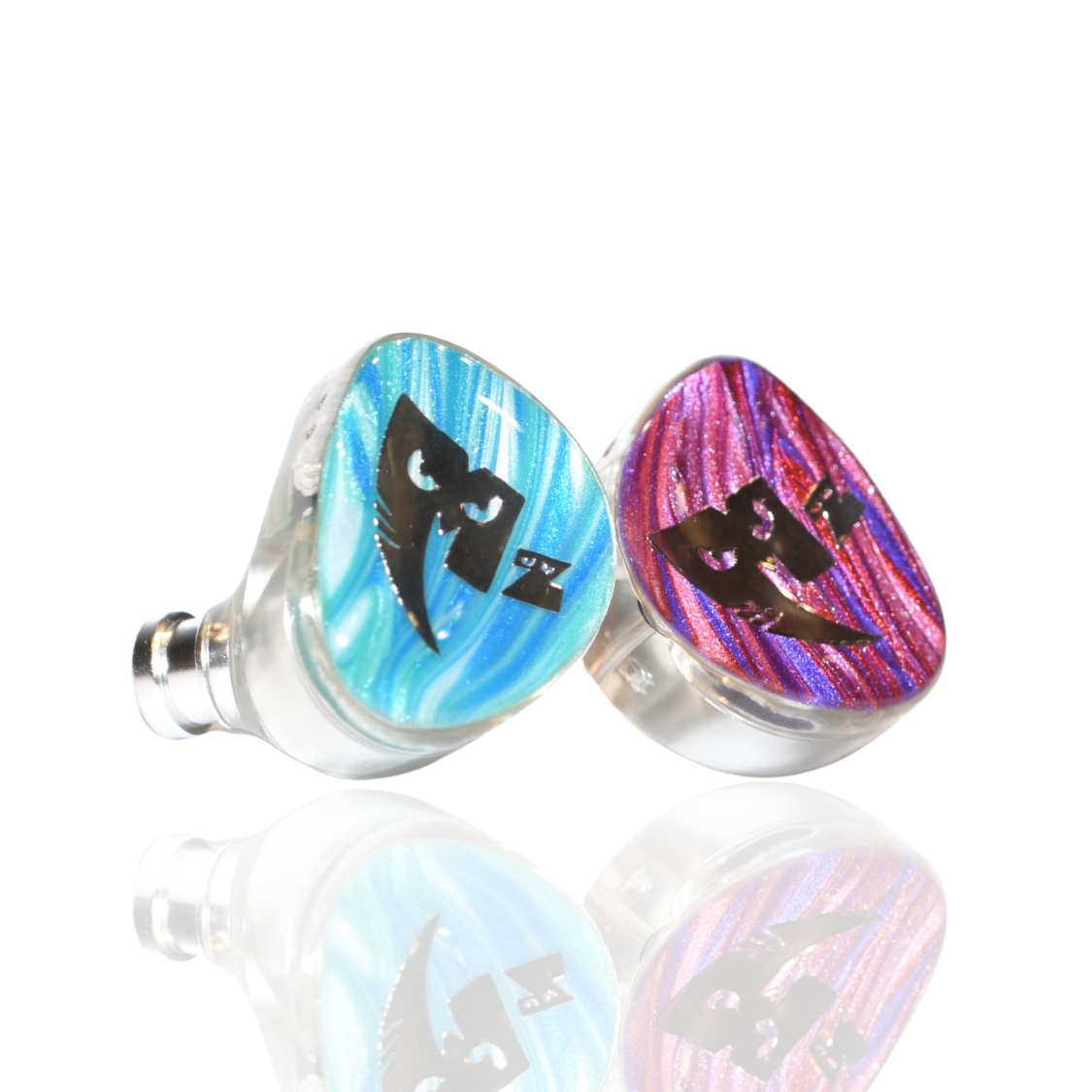 左右で異なるデザインを採用し、左側はシアンを基調に、右側はマゼンタをベースにした複雑なスワール模様をあしらうことで、MonsterZ MATEらしい個性と遊び心を耳元に落とし込みました。大胆で大ぶりなシルバーロゴが、ビジュアル全体を引き締め、コラボモデルならではの存在感を際立たせています。