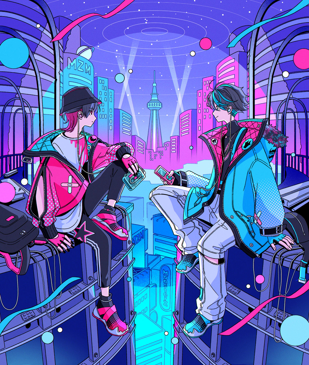 デザインの軸に置いたのは、ネオンカラーを想起させるレトロフューチャーなムードです。シアンとマゼンタが交差する印象的なカラーリングは、どこか懐かしさを感じさせながらも、今の音楽シーンにしっかりと接続するバランスを目指して仕上げました。光の当たり方や見る角度によって表情がわずかに変化し、静止したデザインでありながら、どこか躍動感を感じさせる一台となっています。