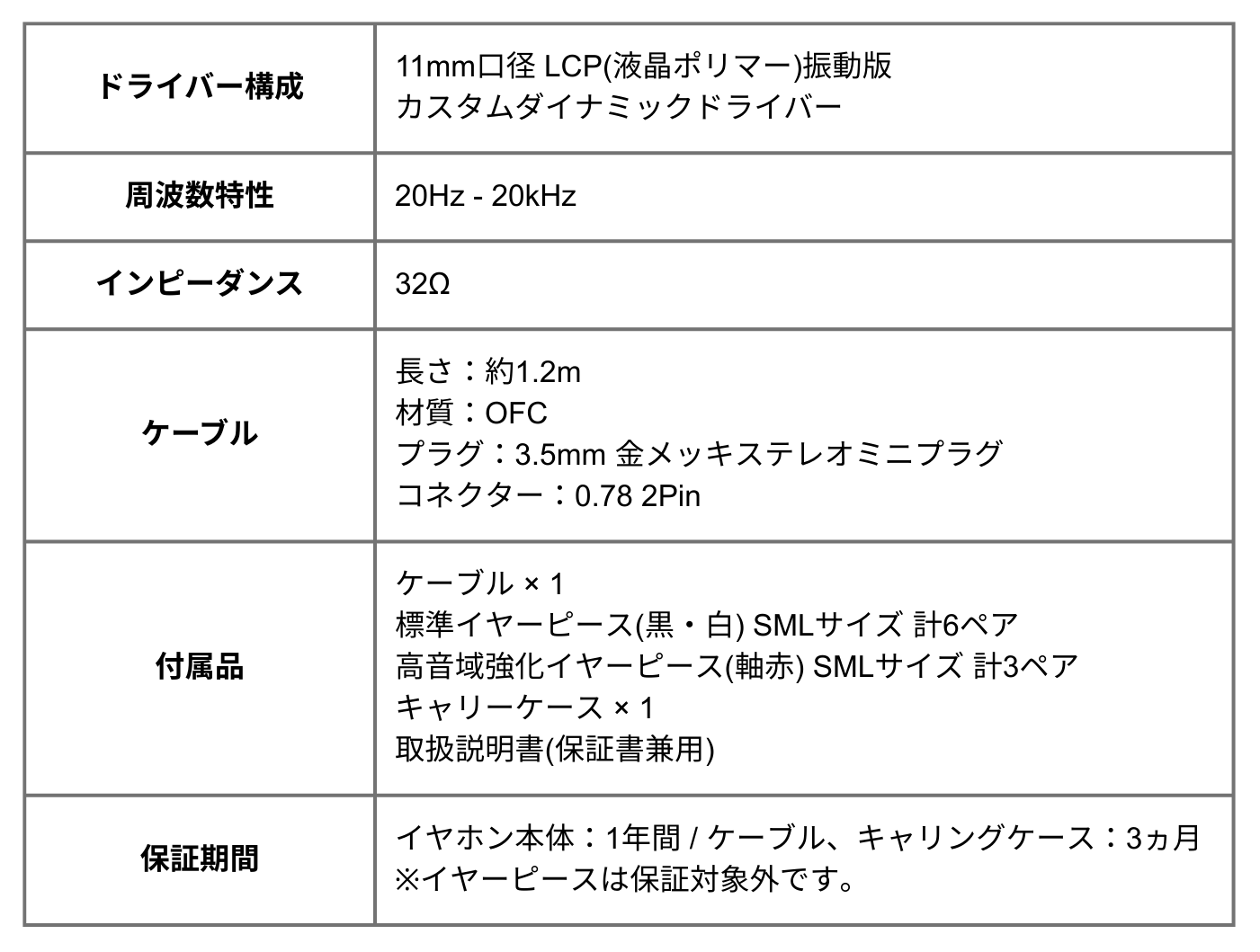 ドライバーには、11mm口径のカスタムダイナミックドライバーを搭載。振動板にはLCP(液晶ポリマー)素材を採用し、剛性と自然な音色のバランスを両立しています。低域は力強く原音に忠実に、中域はニュートラルで聴き取りやすく、高域はクリーンで伸びのあるサウンドに仕上がっています。加えて、耳内の圧力バランスにも配慮した構造で、長時間のリスニングでも圧迫感を軽減しやすい設計です。音質面だけでなく、快適な装着感にも寄与します。